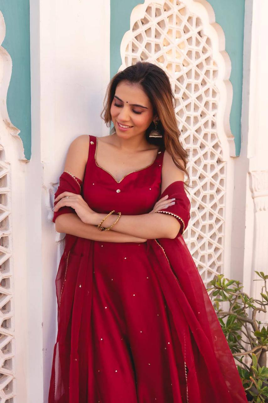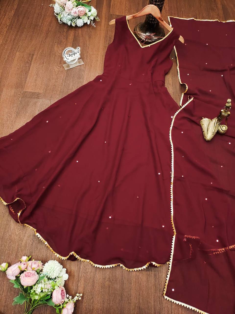"Graceful Maroon Flared Anarkali with Dupatta – Festive Wear"