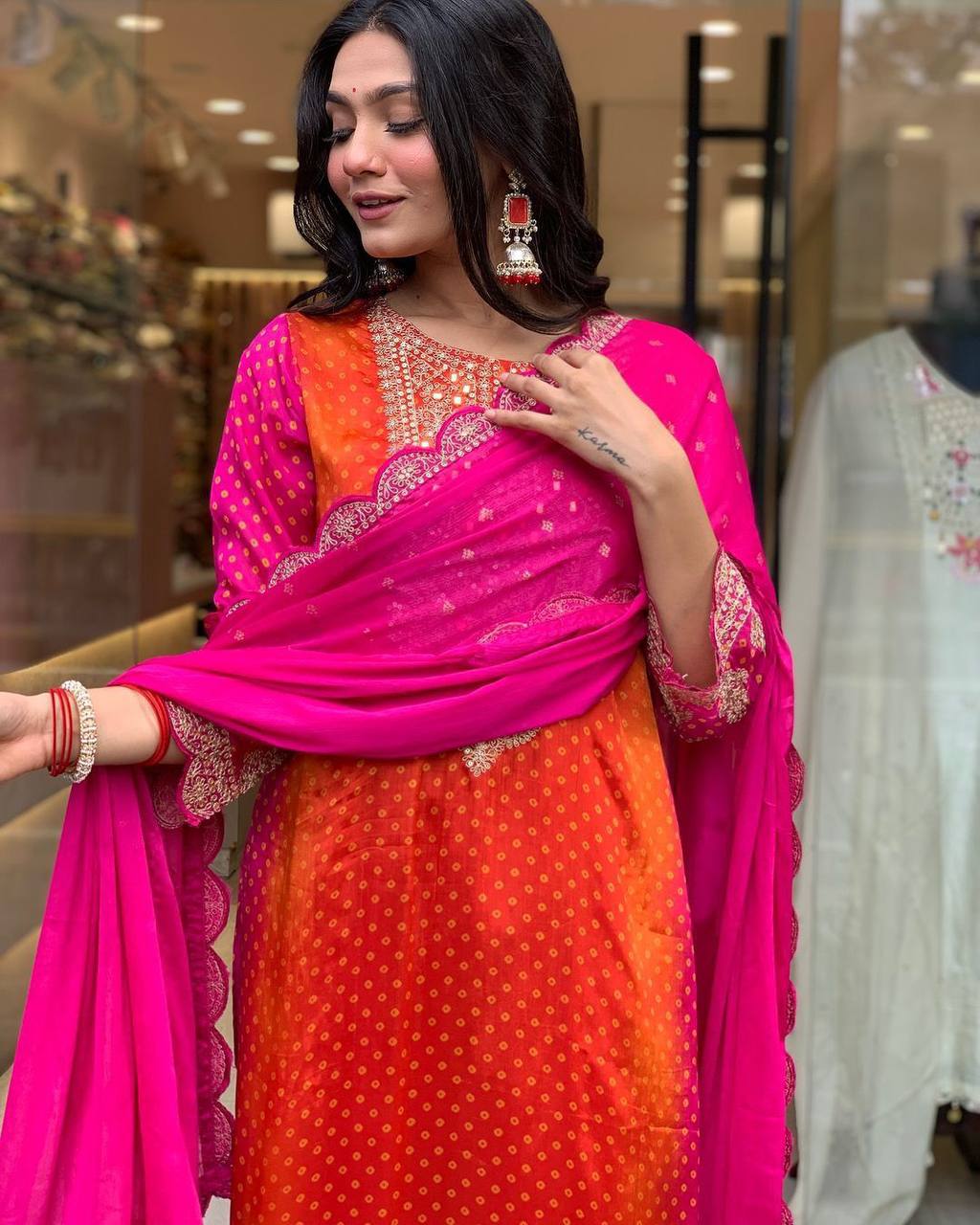 Classic Orange Color Chinnon Heavy Embroidery Salwar Suit