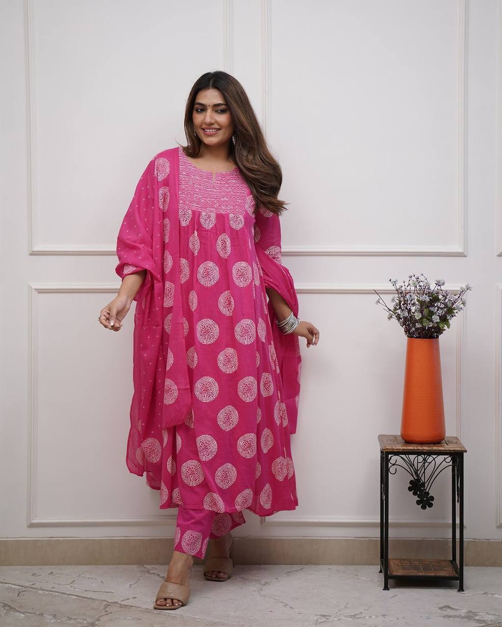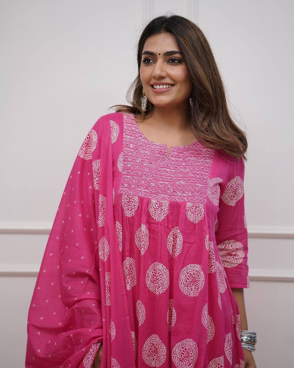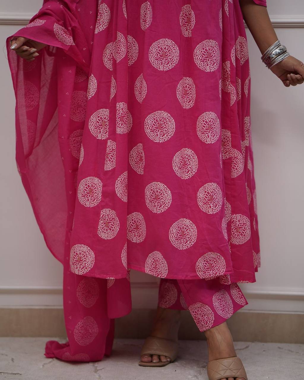 "Hot Pink Bandhani-Print Cotton Kurta Set – Everyday Elegance with Comfort"