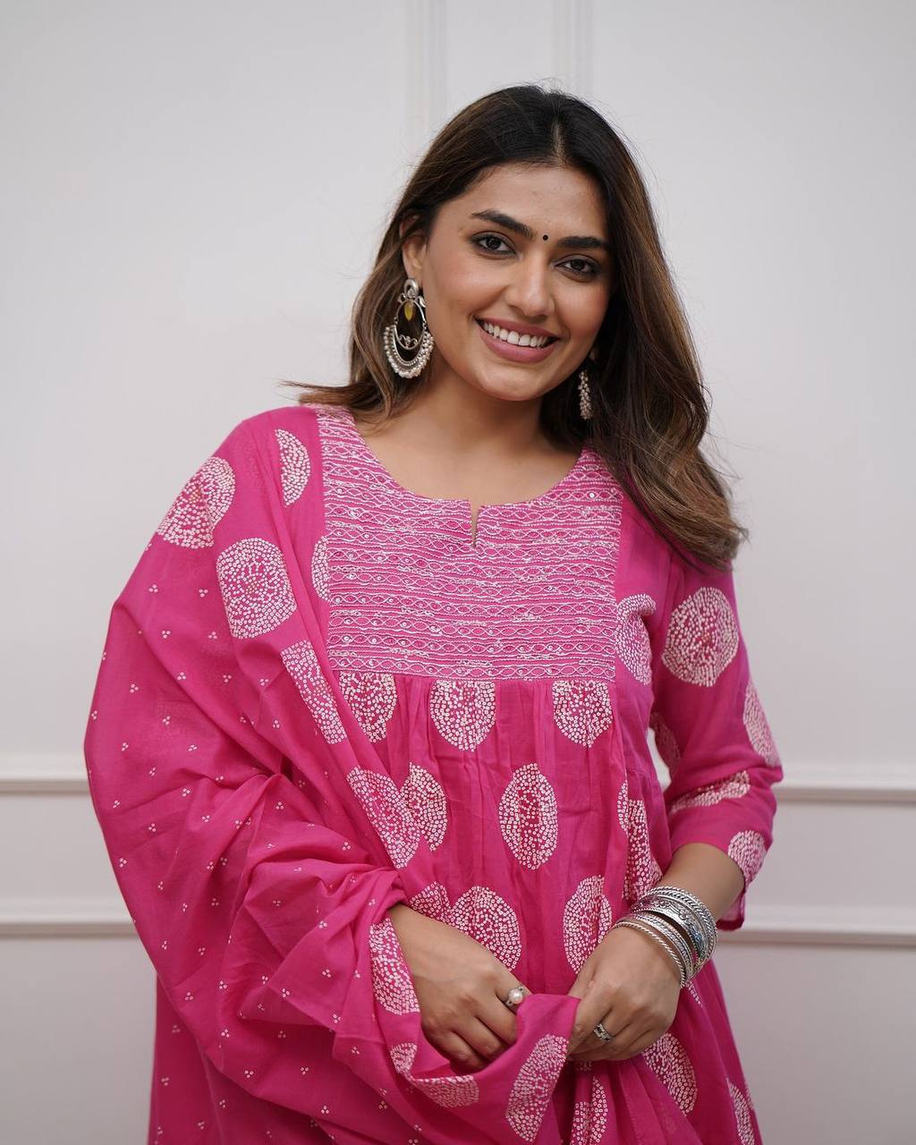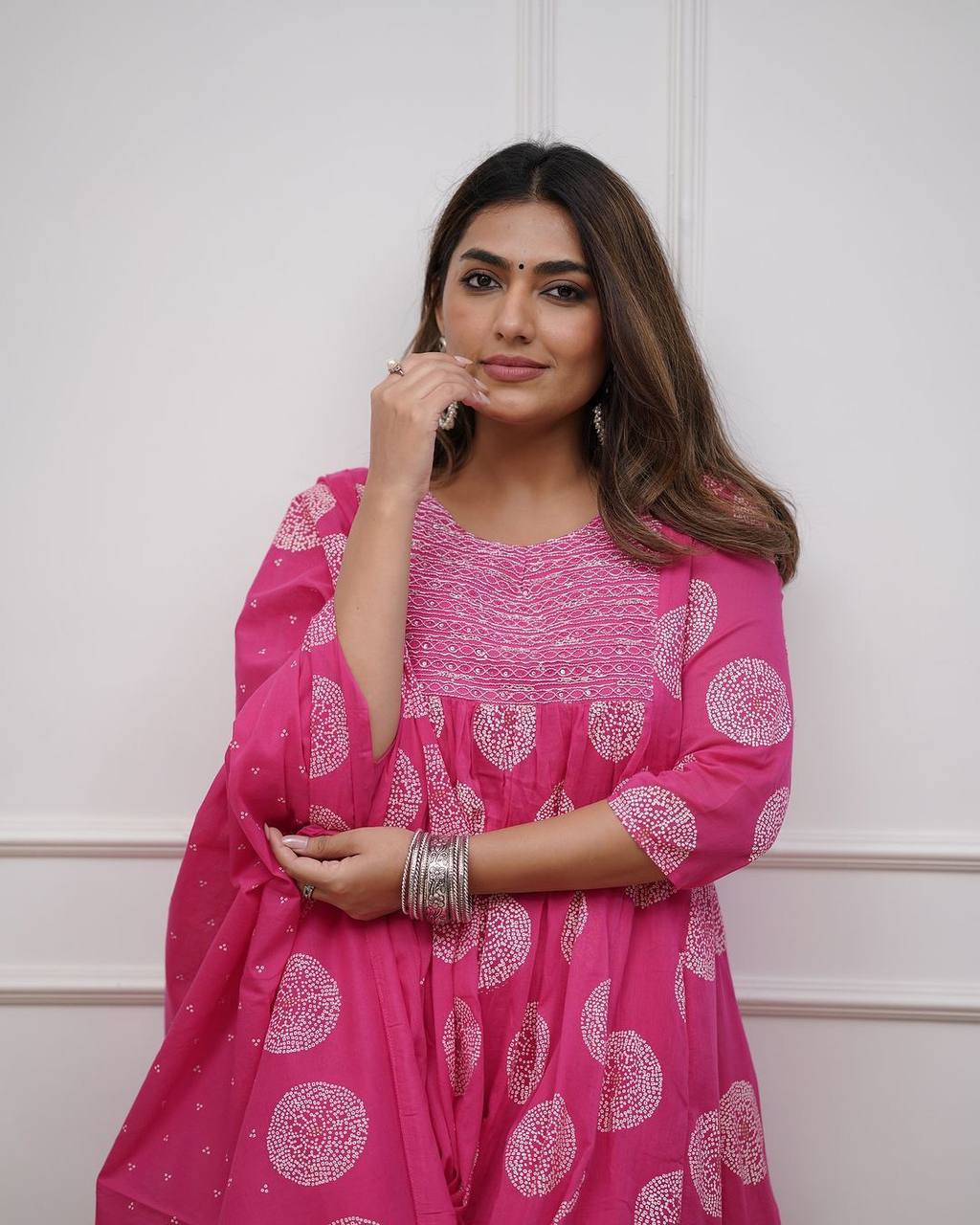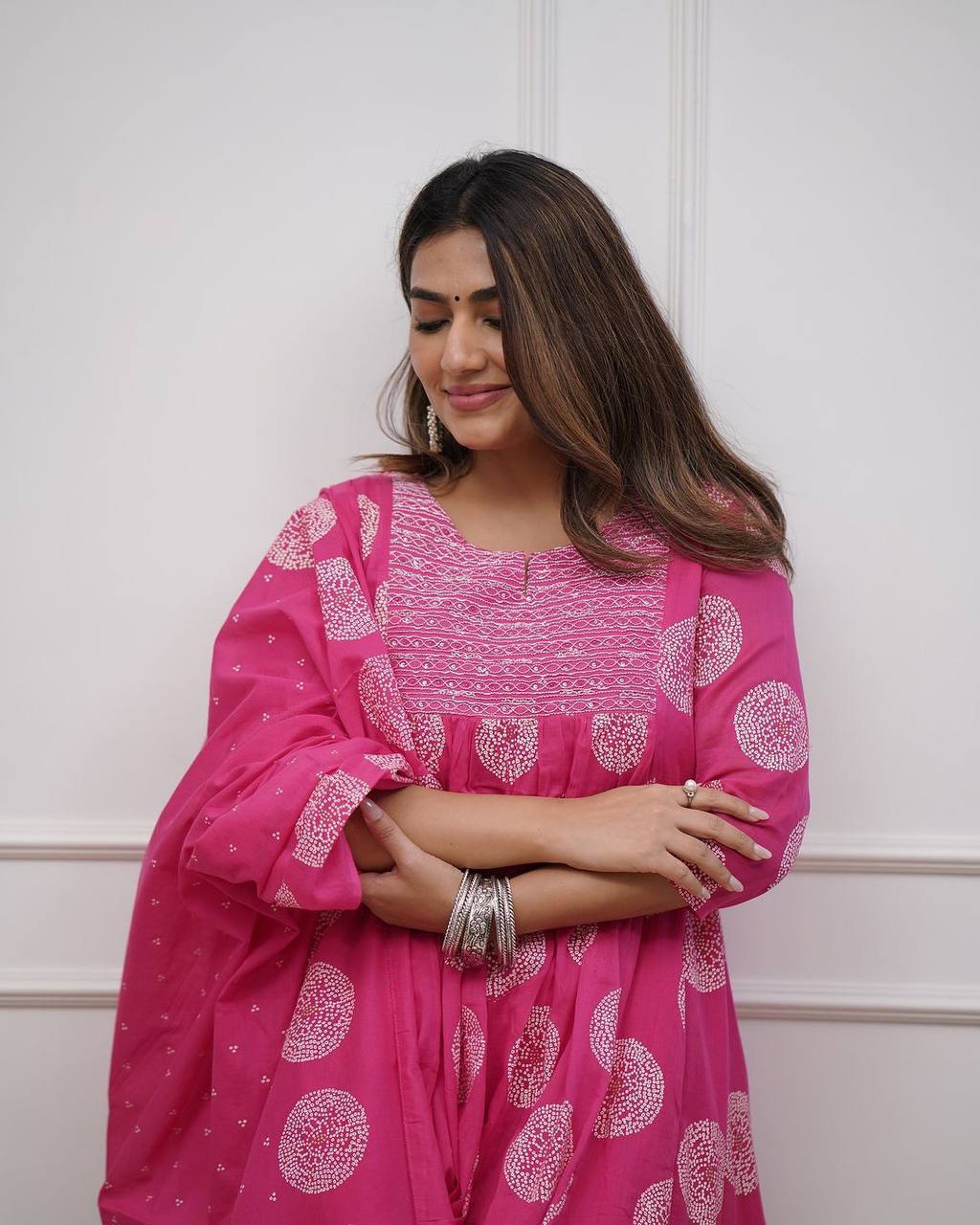 "Hot Pink Bandhani-Print Cotton Kurta Set – Everyday Elegance with Comfort"