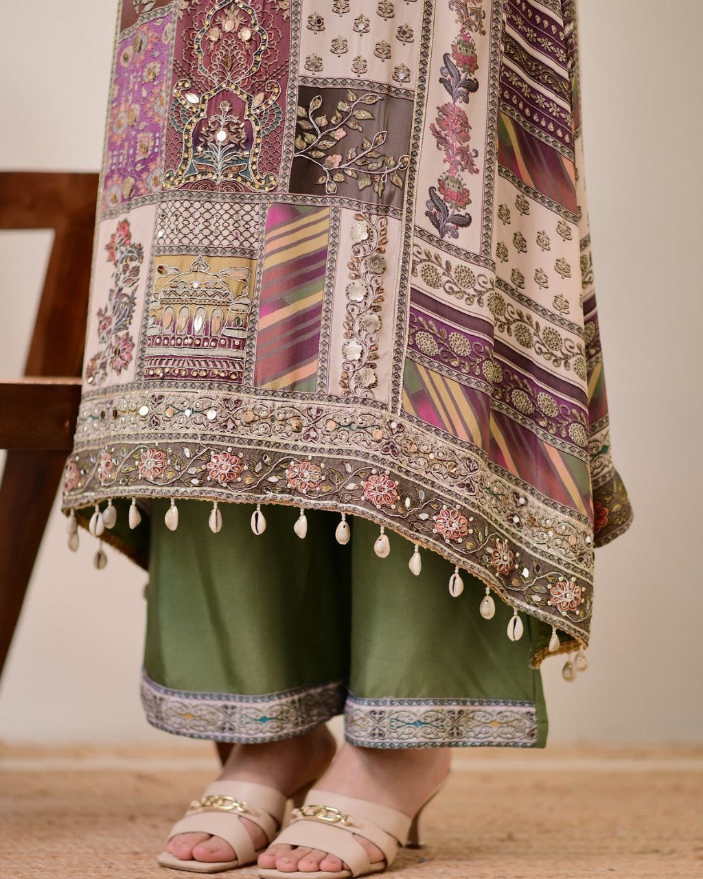 Color: Multi-Color Patchwork Print (Kurta) & Olive Green (Pants)