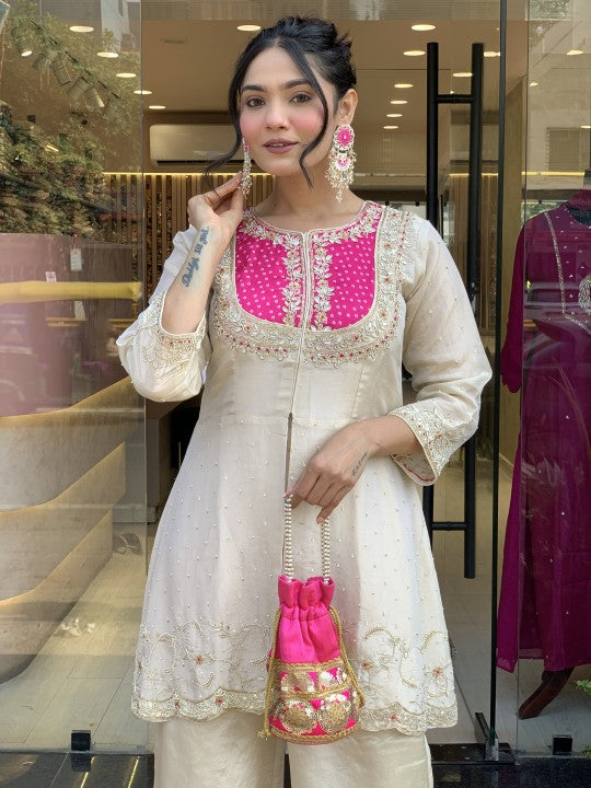 At Amrit Designer, we believe the ideal suit set blends comfort, style, and occasion-ready elegance. Here are a few handy tips to help you find your perfect match: Know Your Silhouette – Want a structured look? Straight-cut suits are always flattering. For a graceful, flowing vibe, Anarkalis enhance curves and bring a regal charm. Dress for the Moment – Glammed-up shararas and embellished palazzos are perfect for weddings and festive events. For casual days or office wear, opt for minimalistic, neatly tailored suits. Fabric Makes a Difference – Silk, chiffon, and georgette add a touch of luxe for special occasions. Prefer comfort for everyday wear? Lightweight cotton and soft linen are your go-to picks. Pay Attention to Detailing – Embroidery, mirror work, or zari accents can instantly elevate your outfit. Choose the finish that reflects your personality. Play with Color – Embrace soft pastels for a delicate, modern look or go timeless with bold hues like maroon, deep green, or navy blue.