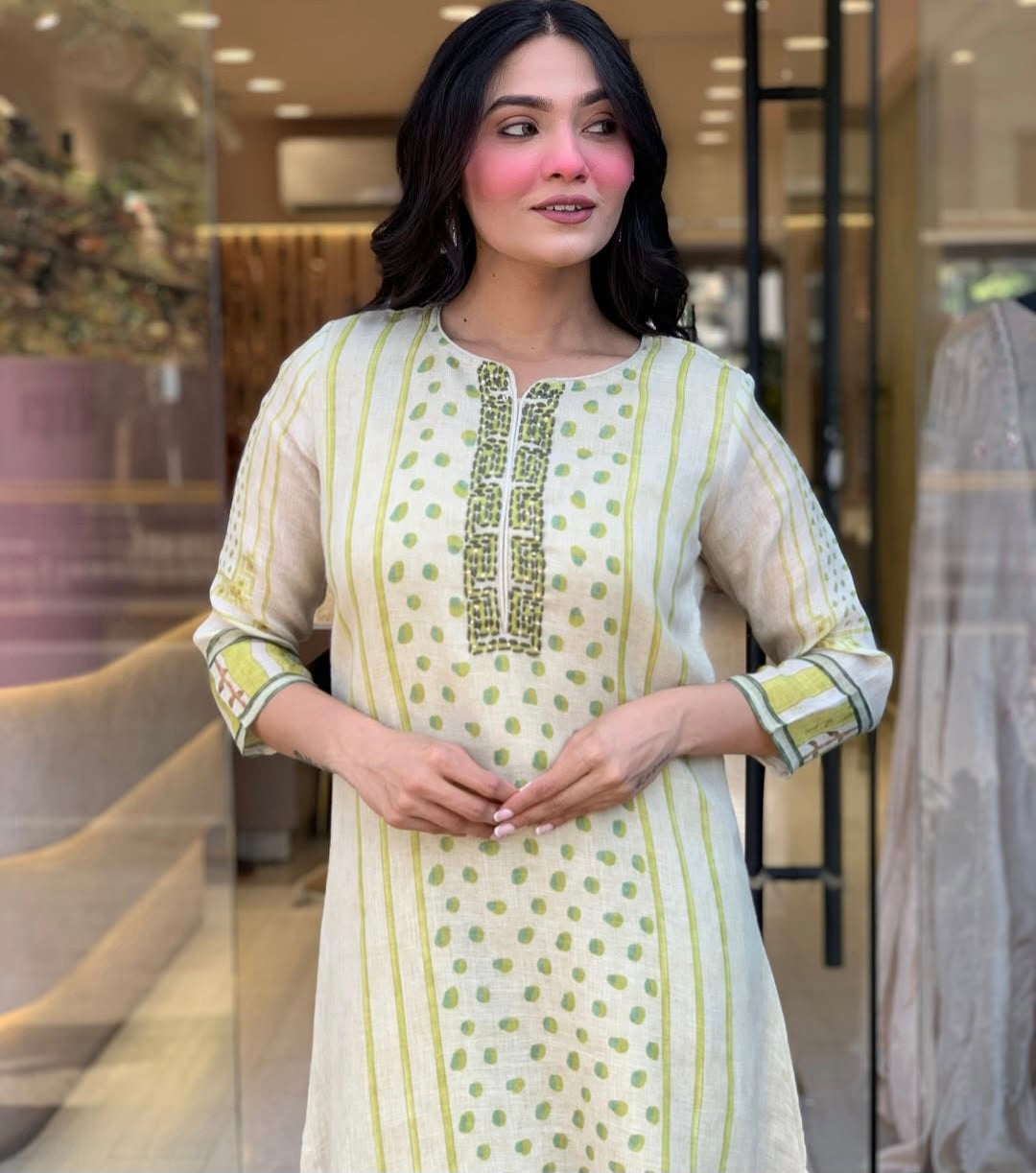 Step into effortless elegance with our linen Suits, crafted for comfort and grace. Made from soft, breathable linen , these suits keep you cool while the intricate thread embroidery detailing adds a touch of timeless charm.