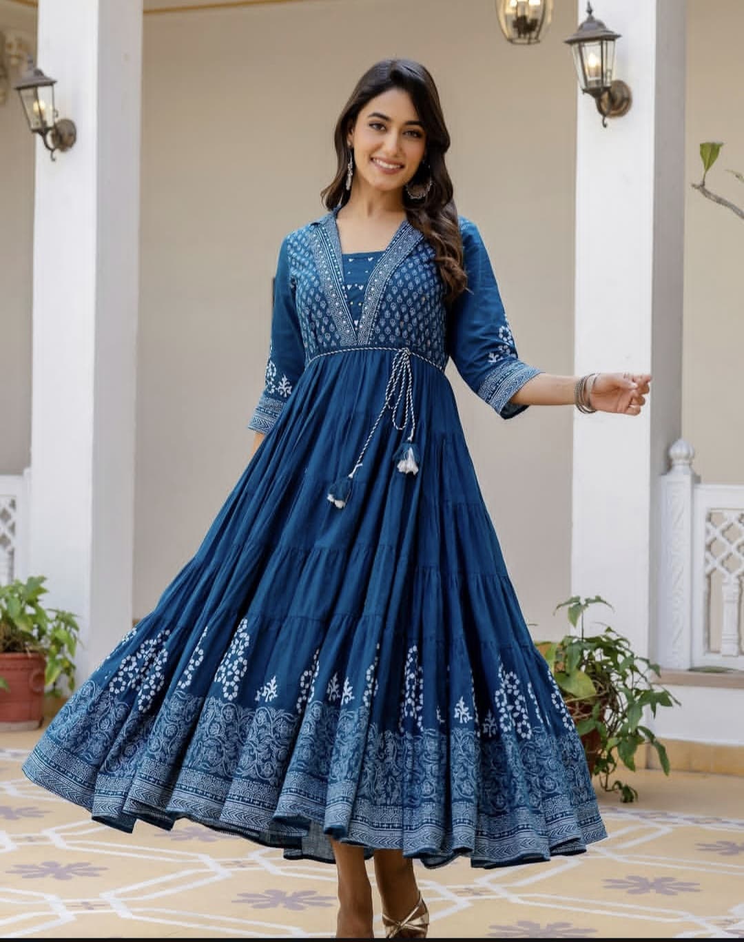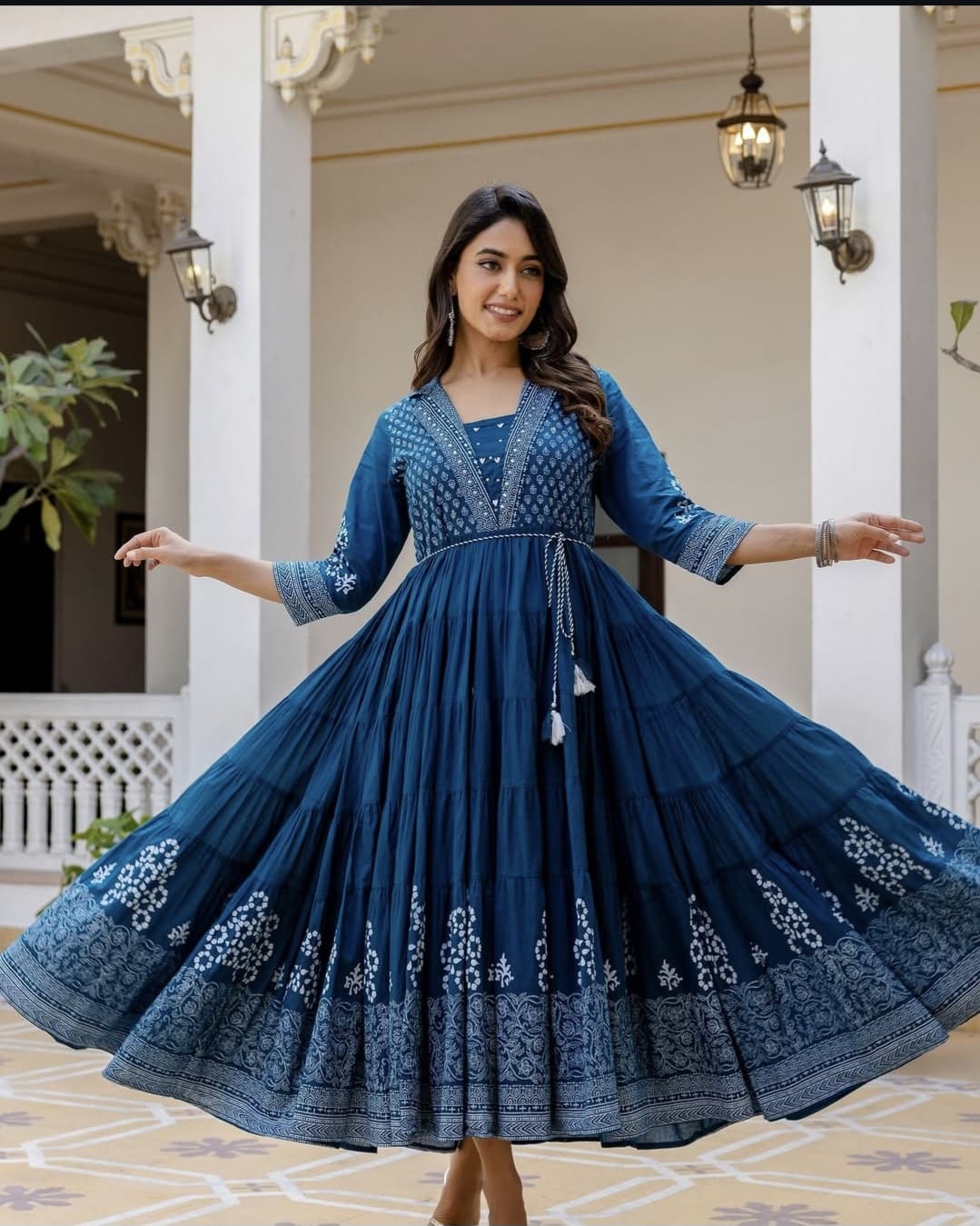 ROYAL BLUE BLOCK PRINT MAL COTTON GOWN