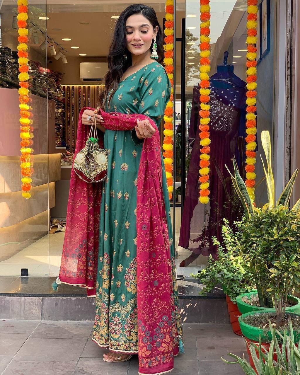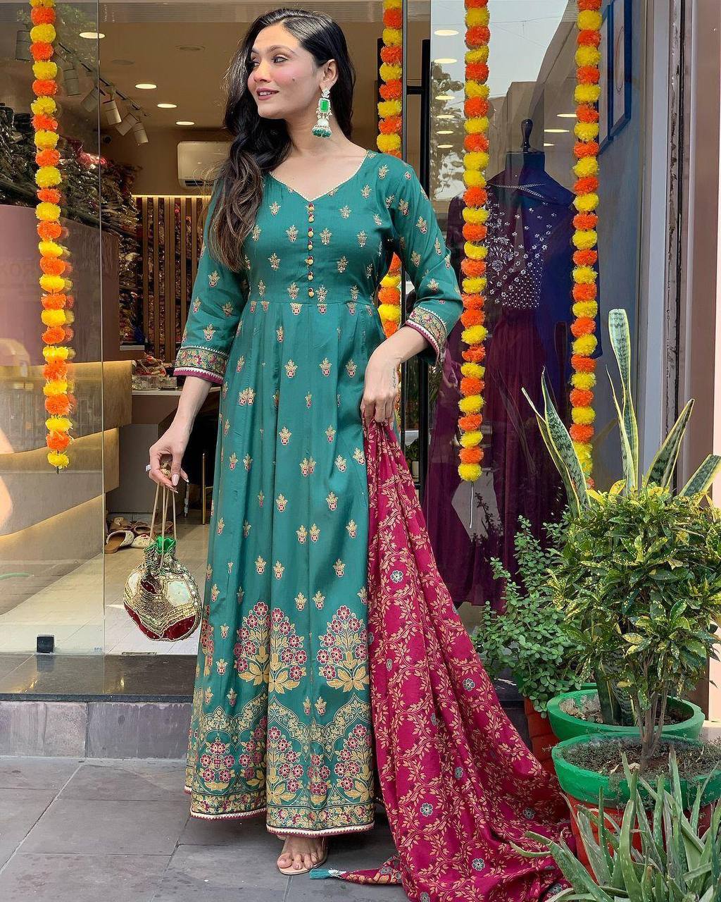 "Elegant Teal Anarkali Set with Embroidered Dupatta – Festive Wear Collection"
