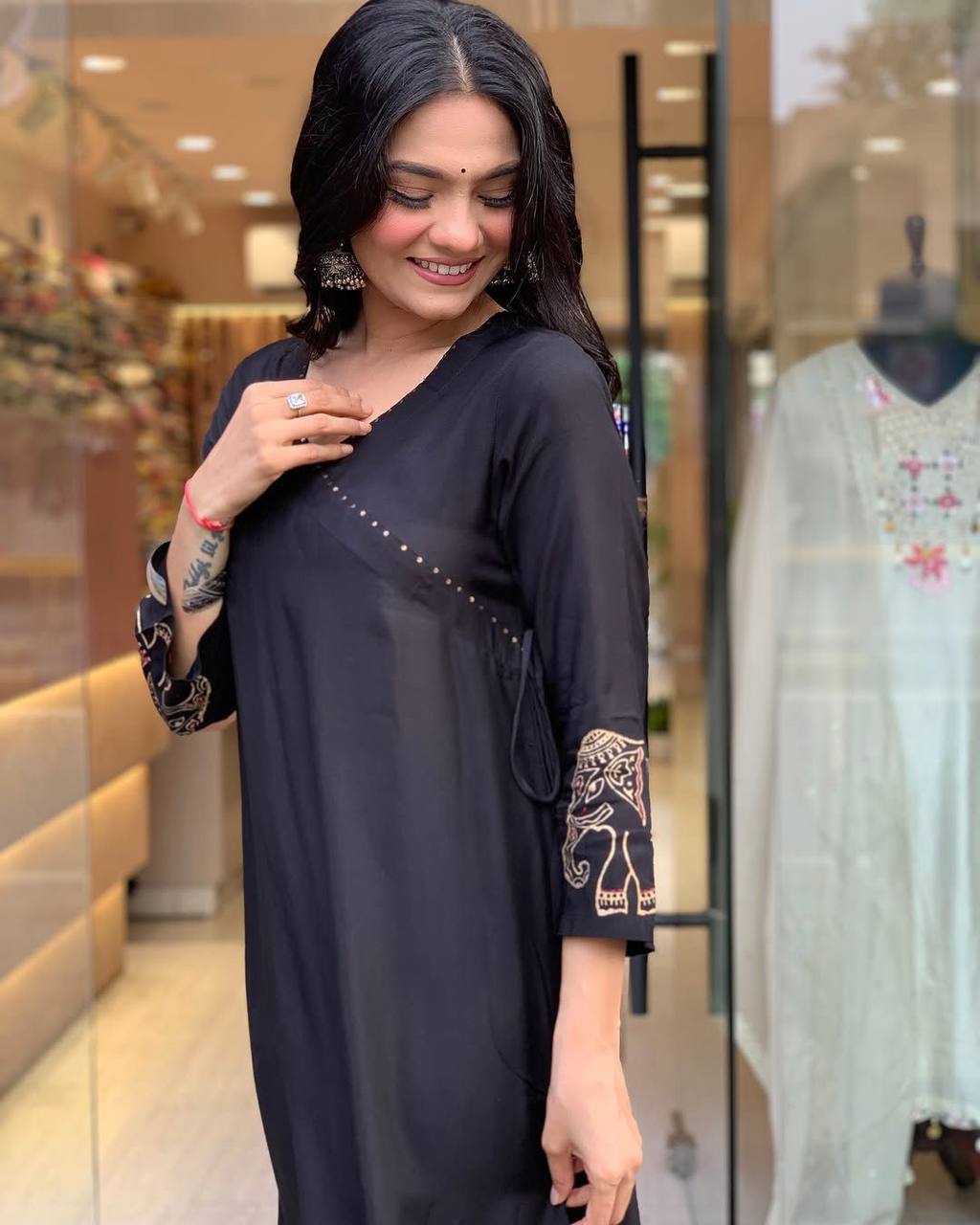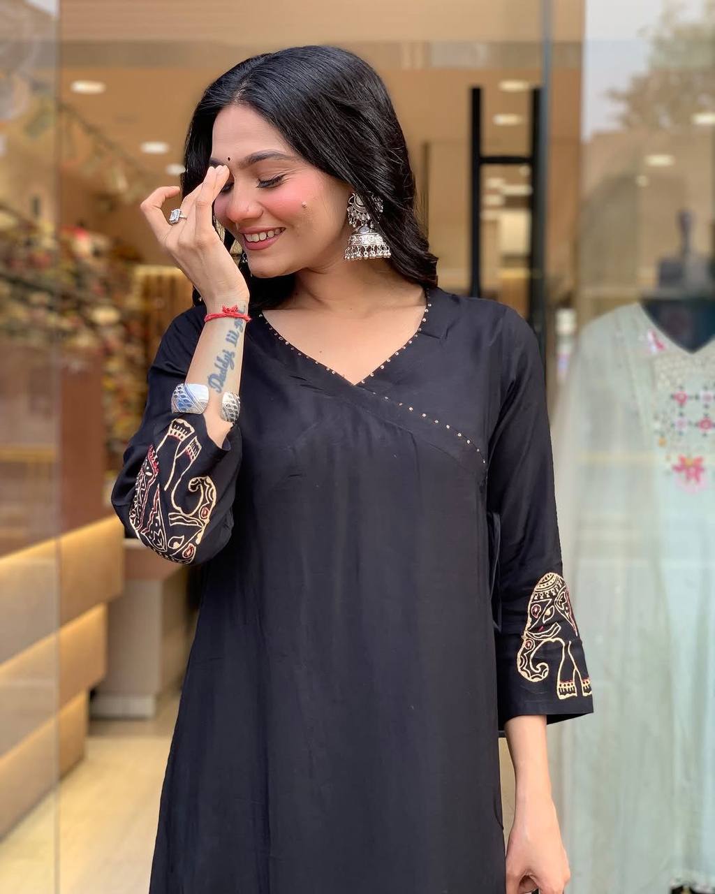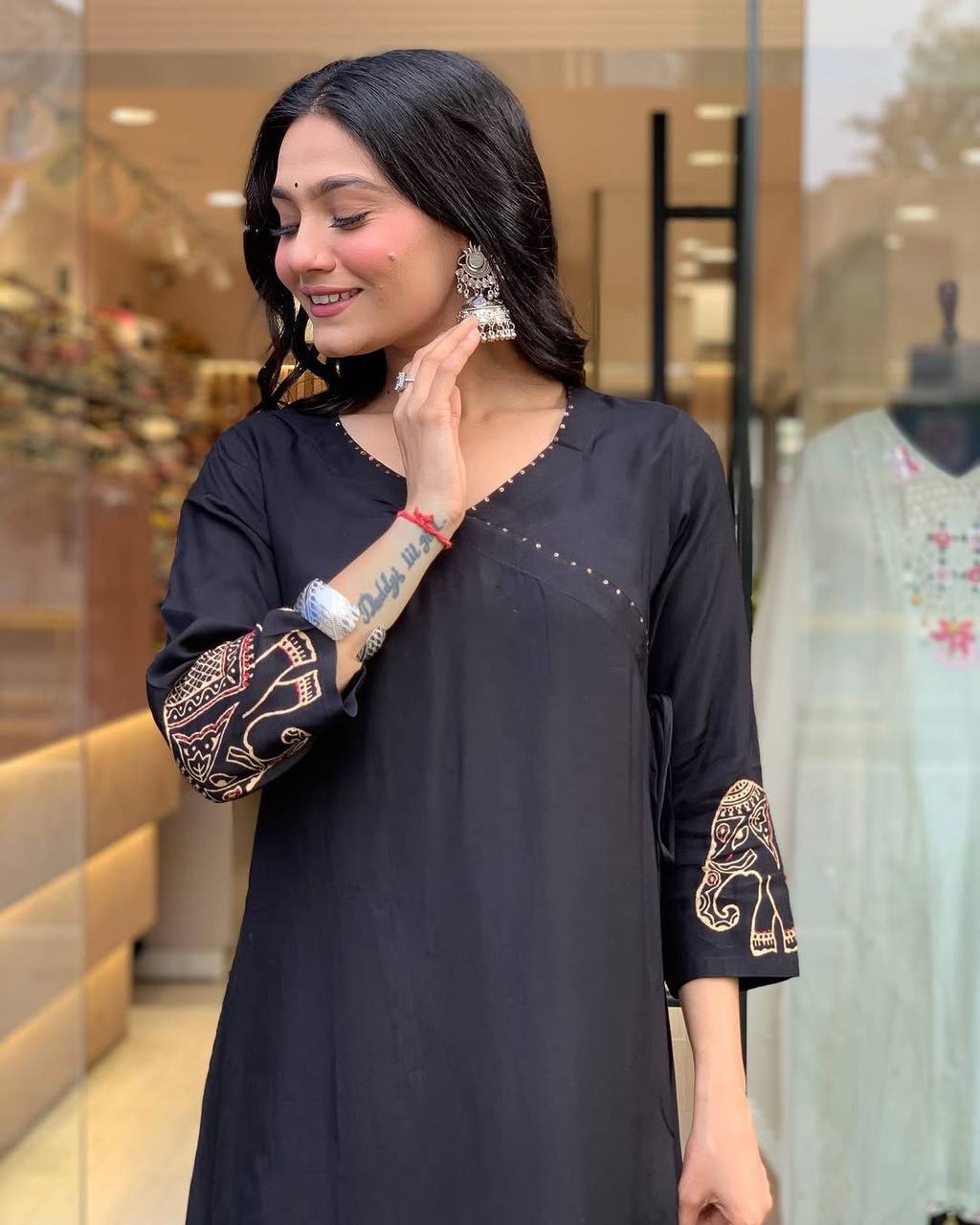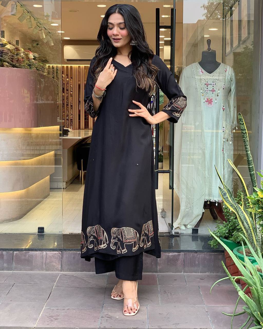"Black Kurta Set with Embroidered Elephant Motifs – Chic Ethnic Statement"